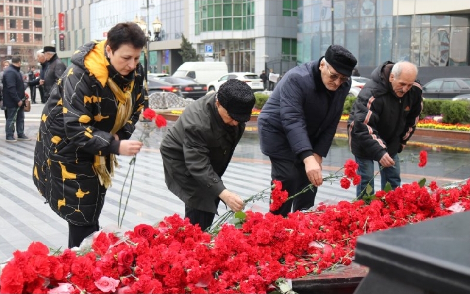 Ziyaretçiler, soykırım kurbanlarının aziz hatırasını büyük bir saygıyla anarak anıtın önüne çelenk ve çiçekler bıraktı.
